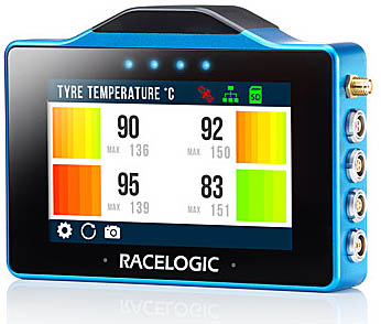 VBOX TTMS werden Reifenlaufflächentemperaturen live während der Fahrt für den Piloten hochanschaulich visualisiert.